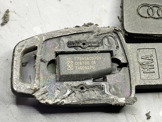 この中身のプラスチックキー部分に、エンジン始動をさせる大事なデータチップが入っています。