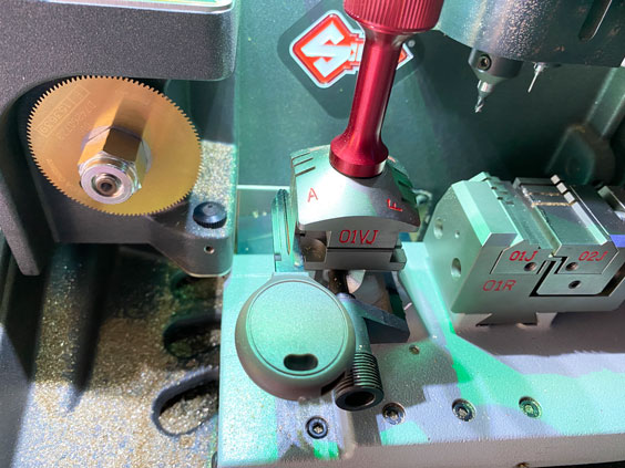 「もう少し充電してくれないと、肝心のイモビライザーのプログラム出来ないよ~💦」なんて考えながら、お客様に渡す予定のイモビライザーのキーもカット。