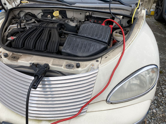 最後のエンジン始動は、繋げていた安定化電源装置ではどうも足りなかったようで…。