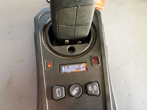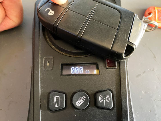 壊れたスマートキー本体を近づけたままボタンを押しこむと。