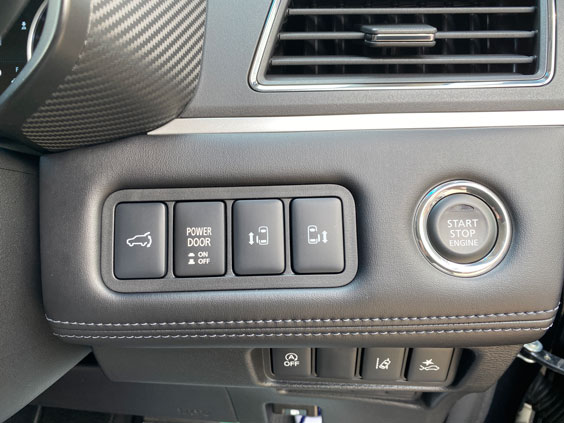 新しくなったデリカ D5は今どきのプッシュボタンでエンジン始動する仕様。
